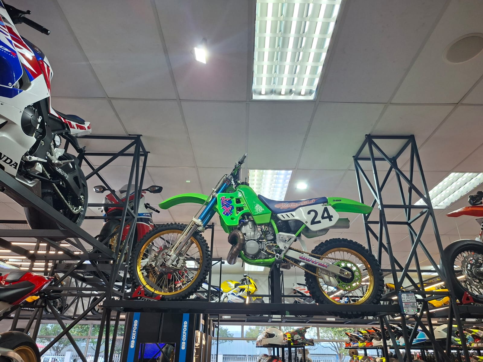 The 1991 Kawasaki KX500 is a legendary “Open Class” two-stroke motocross bike, famous for its massive power and dominance in desert racing. Often referred to as an “adrenaline machine,” it remains one of the most powerful dirt bikes ever produced.