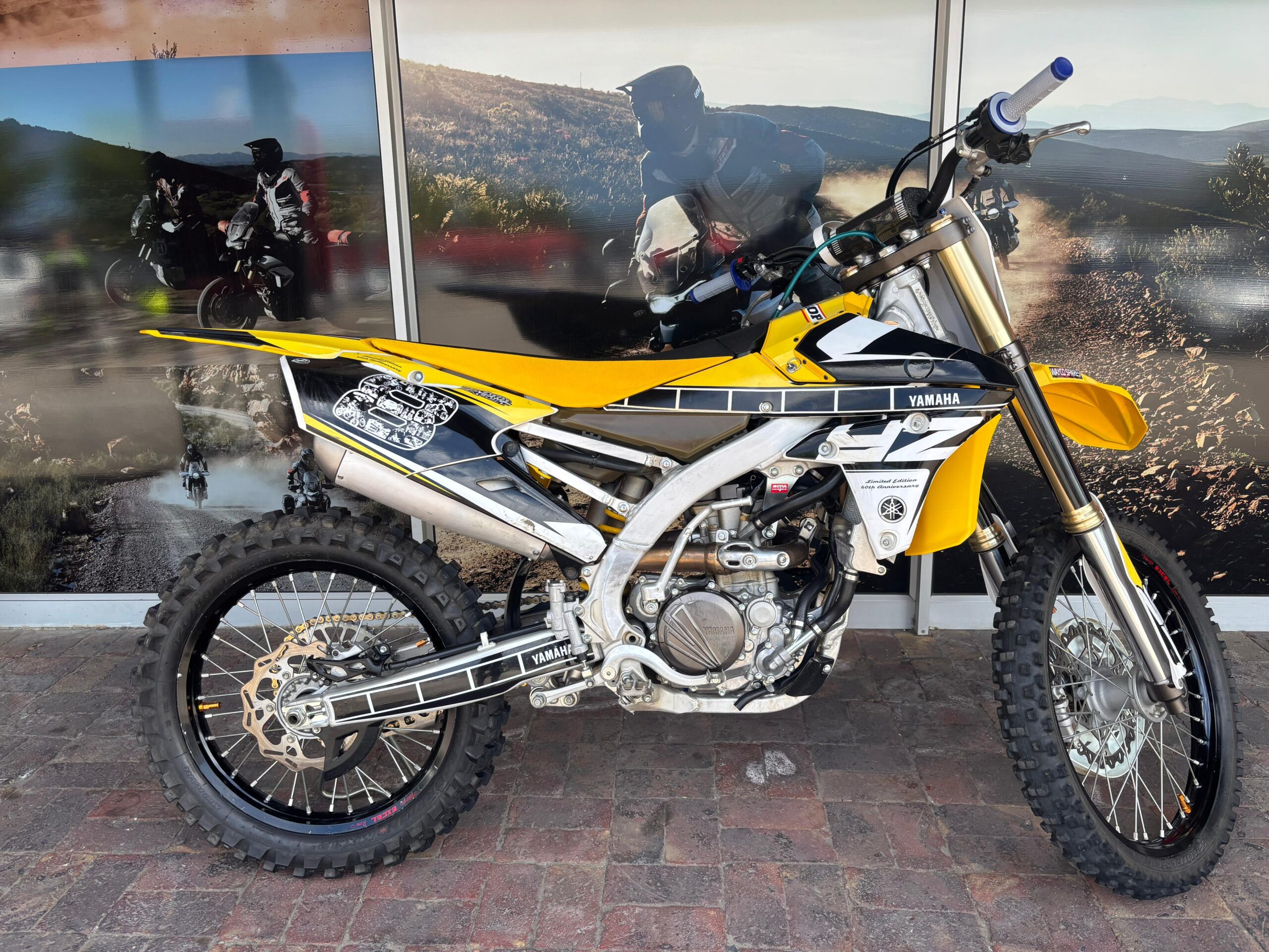 The 2016 Yamaha YZ250F 60th Anniversary Edition was a special, limited-run motocross bike featuring iconic yellow/black “speedblock” graphics to celebrate Yamaha’s heritage.